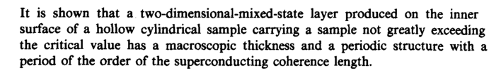 It is shown that a two-dimensional-mixed-state layer produced on the inner surface of a hollow cylindrical sample carrying a sample not greatly exceeding the critical value has a macroscopic thickness and a periodic structure with a period of the order of the superconducting coherence length.