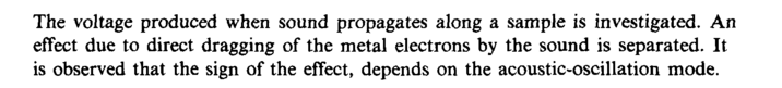 The voltage produced when sound propagates along a sample is investigated. An effect due to direct dragging of the metal electrons by the sound is separated. It is observed that the sign of the effect, depends on the acoustic-oscillation mode.
