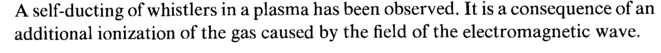 A self-ducting of whistlers in a plasma has been observed. It is a consequence of an additional ionization of the gas caused by the field of the electromagnetic wave.