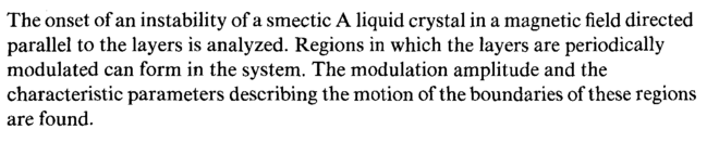 The onset of an instability of a smectic A liquid crystal in a magnetic field directed parallel to the layers is analyzed. Regions in which the layers are periodically modulated can form in the system. The modulation amplitude and the characteristic parameters describing the motion of the boundaries of these regions are found.