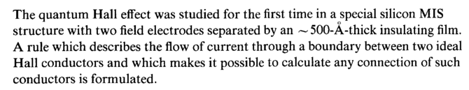 The quantum Hall effect was studied for the first time in a special silicon MIS structure with two field electrodes separated by an ~ 500-A-thick insulating film. A rule which describes the flow of current through a boundary between two ideal Hall conductors and which makes it possible to calculate any connection of such conductors is formulated.