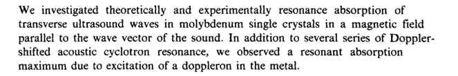 We investigated theoretically and experimentally resonance absorption of transverse ultrasound waves in molybdenum single crystals in a magnetic field parallel to the wave vector of the sound. In addition to several series of Doppler-shifted acoustic cyclotron resonance, we observed a resonant absorption maximum due to excitation of a doppleron in the metal.