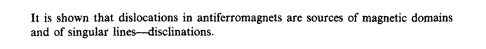 It is shown that dislocations in antiferromagnets are sources of magnetic domains and of singular lines—disclinations.