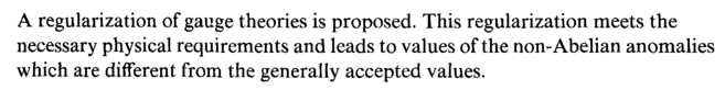 A regularization of gauge theories is proposed. This regularization meets the necessary physical requirements and leads to values of the non-Abelian anomalies which are different from the generally accepted values.