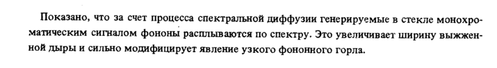 Показано, что за счет процесса спектральной диффузии генерируемые в стекле монохроматическим сигналом фононы расплываются по спектру. Это увеличивает ширину выжженной дыры и сильно модифицирует явление узкого фононного горла.