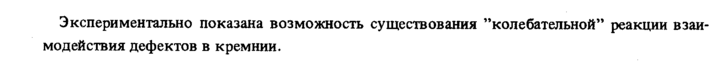 Экспериментально показана возможность существования "колебательной" реакции взаимодействия дефектов в кремнии.