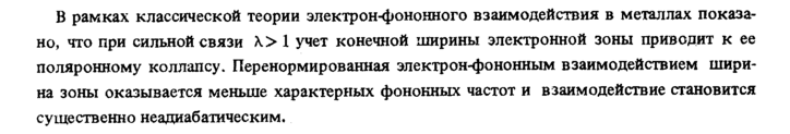 В рамках классической теории электрон-фононного взаимодействия в металлах показано, что при сильной связи λ> 1 учет конечной ширины электронной зоны приводит к ее поляронному коллапсу. Перенормированная электрон-фононным взаимодействием ширина зоны оказывается меньше характерных фонокных частот и взаимодействие становится существенно неадиабатическим.