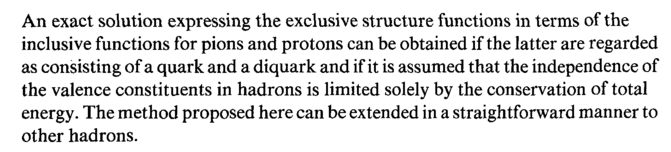 An exact solution expressing the exclusive structure functions in terms of the inclusive functions for pions and protons can be obtained if the latter are regarded as consisting of a quark and a diquark and if it is assumed that the independence of the valence constituents in hadrons is limited solely by the conservation of total energy. The method proposed here can be extended in a straightforward manner to other hadrons.