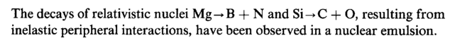 The decays of relativistic nuclei Mg -► Β + N and Si -> С + О, resulting from inelastic peripheral interactions, have been observed in a nuclear emulsion.