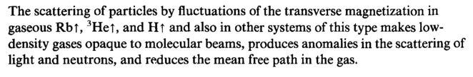 The scattering of particles by fluctuations of the transverse magnetization in gaseous Rbt, 3Hef, and Ш and also in other systems of this type makes low-density gases opaque to molecular beams, produces anomalies in the scattering of light and neutrons, and reduces the mean free path in the gas.