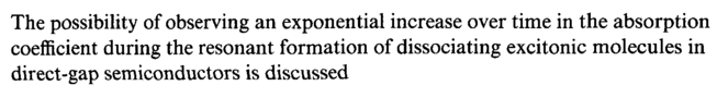 The possibility of observing an exponential increase over time in the absorption coefficient during the resonant formation of dissociating excitonic molecules in direct-gap semiconductors is discussed