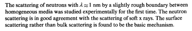 The scattering of neutrons with λ ^ 1 nm by a slightly rough boundary between homogeneous media was studied experimentally for the first time. The neutron scattering is in good agreement with the scattering of soft χ rays. The surface scattering rather than bulk scattering is found to be the basic mechanism.
