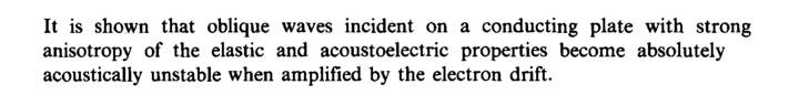 It is shown that oblique waves incident on a conducting plate with strong anisotropy of the elastic and acoustoelectric properties become absolutely acoustically unstable when amplified by the electron drift.