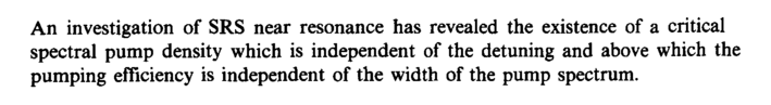 An investigation of SRS near resonance has revealed the existence of a critical spectral pump density which is independent of the detuning and above which the pumping efficiency is independent of the width of the pump spectrum.