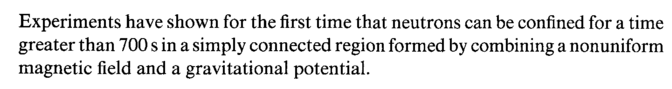 Experiments have shown for the first time that neutrons can be confined for a time greater than 700 s in a simply connected region formed by combining a nonuniform magnetic field and a gravitational potential.