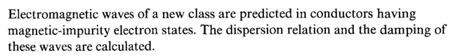 Electromagnetic waves of a new class are predicted in conductors having magnetic-impurity electron states. The dispersion relation and the damping of these waves are calculated.