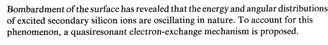 Bombardment of the surface has revealed that the energy and angular distributions of excited secondary silicon ions are oscillating in nature. To account for this phenomenon, a quasiresonant electron-exchange mechanism is proposed.