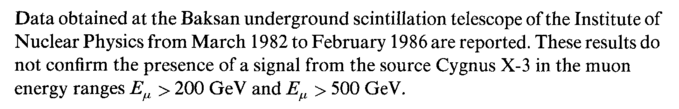 Is the source Cygnus X-3 being observed in underground experiments?