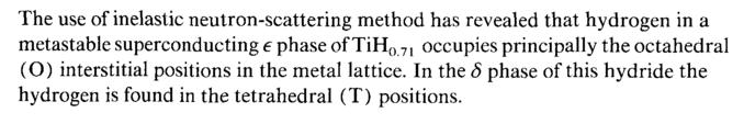 The use of inelastic neutron-scattering method has revealed that hydrogen in a metastable superconducting e phase of TiH0 7 { occupies principally the octahedral (O) interstitial positions in the metal lattice. In the δ phase of this hydride the hydrogen is found in the tetrahedral (T) positions.