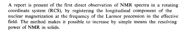 A report is present of the first direct observation of NMR spectra in a rotating coordinate system (RCS), by registering the longitudinal component of the nuclear magnetization at the frequency of the Larmor precession in the effective field. The method makes it possible to increase by simple means the resolving power of NMR in solids.