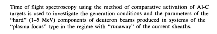 Time of flight spectroscopy using the method of comparative activation of Al-C targets is used to investigate the generation conditions and the parameters of the "hard" (1-5 MeV) components of deuteron beams produced in systems of the "plasma focus" type in the regime with "runaway" of the current sheaths.