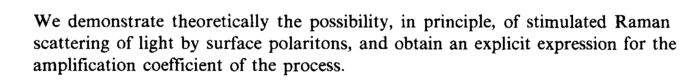 We demonstrate theoretically the possibility, in principle, of stimulated Raman scattering of light by surface polaritons, and obtain an explicit expression for the amplification coefficient of the process.