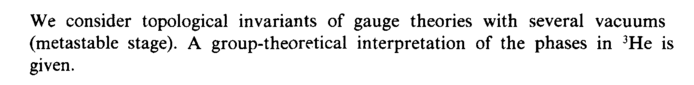We consider topological invariants of gauge theories with several vacuums (metastable stage). A group-theoretical interpretation of the phases in
