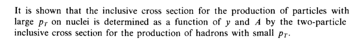 It is shown that the inclusive cross section for the production of particles with large pT on nuclei is determined as a function of у and A by the two-particle inclusive cross section for the production of hadrons with small pT.