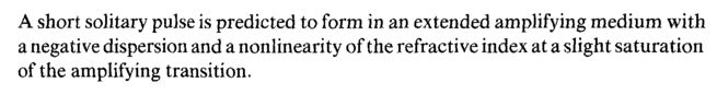 A short solitary pulse is predicted to form in an extended amplifying medium with a negative dispersion and a nonlinearity of the refractive index at a slight saturation of the amplifying transition.
