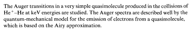 The Auger transitions in a very simple quasimolecule produced in the collisions of He+-He at keV energies are studied. The Auger spectra are described well by the quantum-mechanical model for the emission of electrons from a quasimolecule, which is based on the Airy approximation.