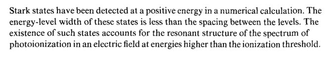 Stark states have been detected at a positive energy in a numerical calculation. The energy-level width of these states is less than the spacing between the levels. The existence of such states accounts for the resonant structure of the spectrum of photoionization in an electric field at energies higher than the ionization threshold.