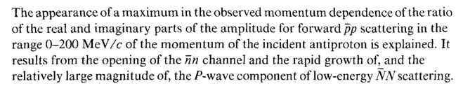 The appearance of a maximum in the observed momentum dependence of the ratio of the real and imaginary parts of the amplitude for forward pp scattering in the range 0-200 MeV/c of the momentum of the incident antiproton is explained. It results from the opening of the Tin channel and the rapid growth of, and the relatively large magnitude of, the P-wave component of low-energy AW scattering.