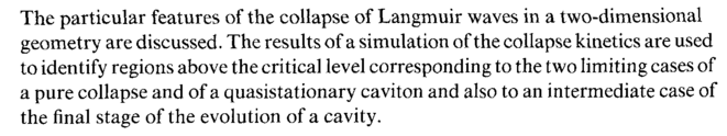 The particular features of the collapse of Langmuir waves in a two-dimensional geometry are discussed. The results of a simulation of the collapse kinetics are used to identify regions above the critical level corresponding to the two limiting cases of a pure collapse and of a quasistationary caviton and also to an intermediate case of the final stage of the evolution of a cavity.