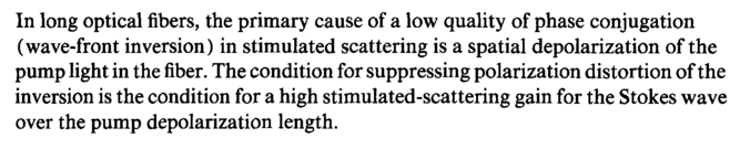 In long optical fibers, the primary cause of a low quality of phase conjugation (wave-front inversion) in stimulated scattering is a spatial depolarization of the pump light in the fiber. The condition for suppressing polarization distortion of the inversion is the condition for a high stimulated-scattering gain for the Stokes wave over the pump depolarization length.