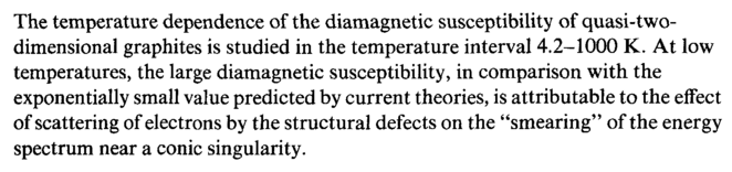 The temperature dependence of the diamagnetic susceptibility of quasi-two-dimensional graphites is studied in the temperature interval 4.2-1000 K. At low temperatures, the large diamagnetic susceptibility, in comparison with the exponentially small value predicted by current theories, is attributable to the effect of scattering of electrons by the structural defects on the "smearing" of the energy spectrum near a conic singularity.