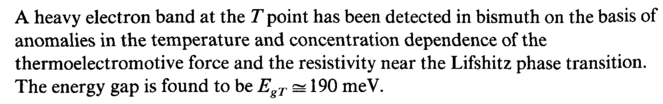 A heavy electron band at the Γ point has been detected in bismuth on the basis of anomalies in the temperature and concentration dependence of the thermoelectromotive force and the resistivity near the Lifshitz phase transition. The energy gap is found to be Ε T ss 190 meV.