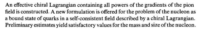 An effective chiral Lagrangian containing all powers of the gradients of the pion field is constructed. A new formulation is offered for the problem of the nucleon as a bound state of quarks in a self-consistent field described by a chiral Lagrangian. Preliminary estimates yield satisfactory values for the mass and size of the nucleon.