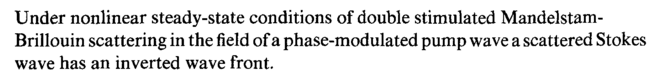 Under nonlinear steady-state conditions of double stimulated Mandelstam-Brillouin scattering in the field of a phase-modulated pump wave a scattered Stokes wave has an inverted wave front.