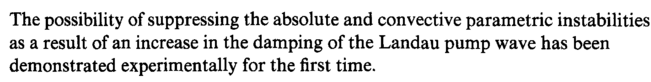 The possibility of suppressing the absolute and convective parametric instabilities as a result of an increase in the damping of the Landau pump wave has been demonstrated experimentally for the first time.