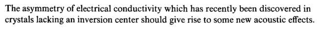The asymmetry of electrical conductivity which has recently been discovered in crystals lacking an inversion center should give rise to some new acoustic effects.