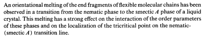 An orientational melting of the end fragments of flexible molecular chains has been observed in a transition from the nematic phase to the smectic A phase of a liquid crystal This melting has a strong effect on the interaction of the order parameters of these phases and on the localization of the tricritical point on the nematic-(smectic .4) transition line.
