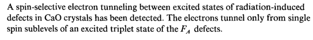 A spin-selective electron tunneling between excited states of radiation-induced defects in CaO crystals has been detected. The electrons tunnel only from single spin sublevels of an excited triplet state of the FA defects.