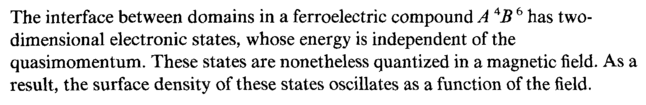 The interface between domains in a ferroelectric compound A 4B 6 has two-dimensional electronic states, whose energy is independent of the quasimomentum. These states are nonetheless quantized in a magnetic field. As a result, the surface density of these states oscillates as a function of the field.