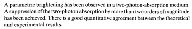 A parametric brightening has been observed in a two-photon-absorption medium. A suppression of the two-photon absorption by more than two orders of magnitude has been achieved. There is a good quantitative agreement between the theoretical and experimental results.