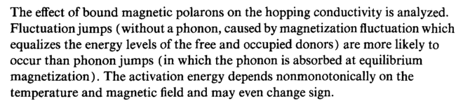 The effect of bound magnetic polarons on the hopping conductivity is analyzed. Fluctuation jumps (without a phonon, caused by magnetization fluctuation which equalizes the energy levels of the free and occupied donors) are more likely to occur than phonon jumps (in which the phonon is absorbed at equilibrium magnetization). The activation energy depends nonmonotonically on the temperature and magnetic field and may even change sign.