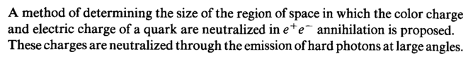 A method of determining the size of the region of space in which the color charge and electric charge of a quark are neutralized in e+e~ annihilation is proposed. These charges are neutralized through the emission of hard photons at large angles.