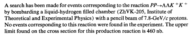 A search has been made for events corresponding to the reaction PP-+AAK +K + by bombarding a liquid-hydrogen filled chamber (ZhVK-205, Institute of Theoretical and Experimental Physics) with a pencil beam of 7.8-GeV/c protons. No events corresponding to this reaction were found in the experiment. The upper limit found on the cross section for this production reaction is 460 nb.