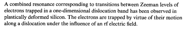 A combined resonance corresponding to transitions between Zeeman levels of electrons trapped in a one-dimensional dislocation band has been observed in plastically deformed silicon. The electrons are trapped by virtue of their motion along a dislocation under the influence of an rf electric field.