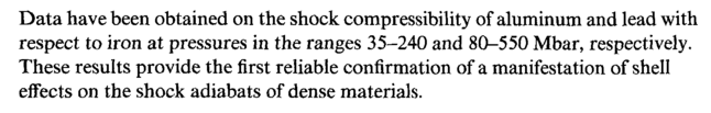 Data have been obtained on the shock compressibility of aluminum and lead with respect to iron at pressures in the ranges 35-240 and 80-550 Mbar, respectively. These results provide the first reliable confirmation of a manifestation of shell effects on the shock adiabats of dense materials.