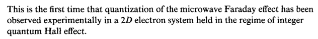 This is the first time that quantization of the microwave Faraday effect has been observed experimentally in a 2D electron system held in the regime of integer quantum Hall effect.